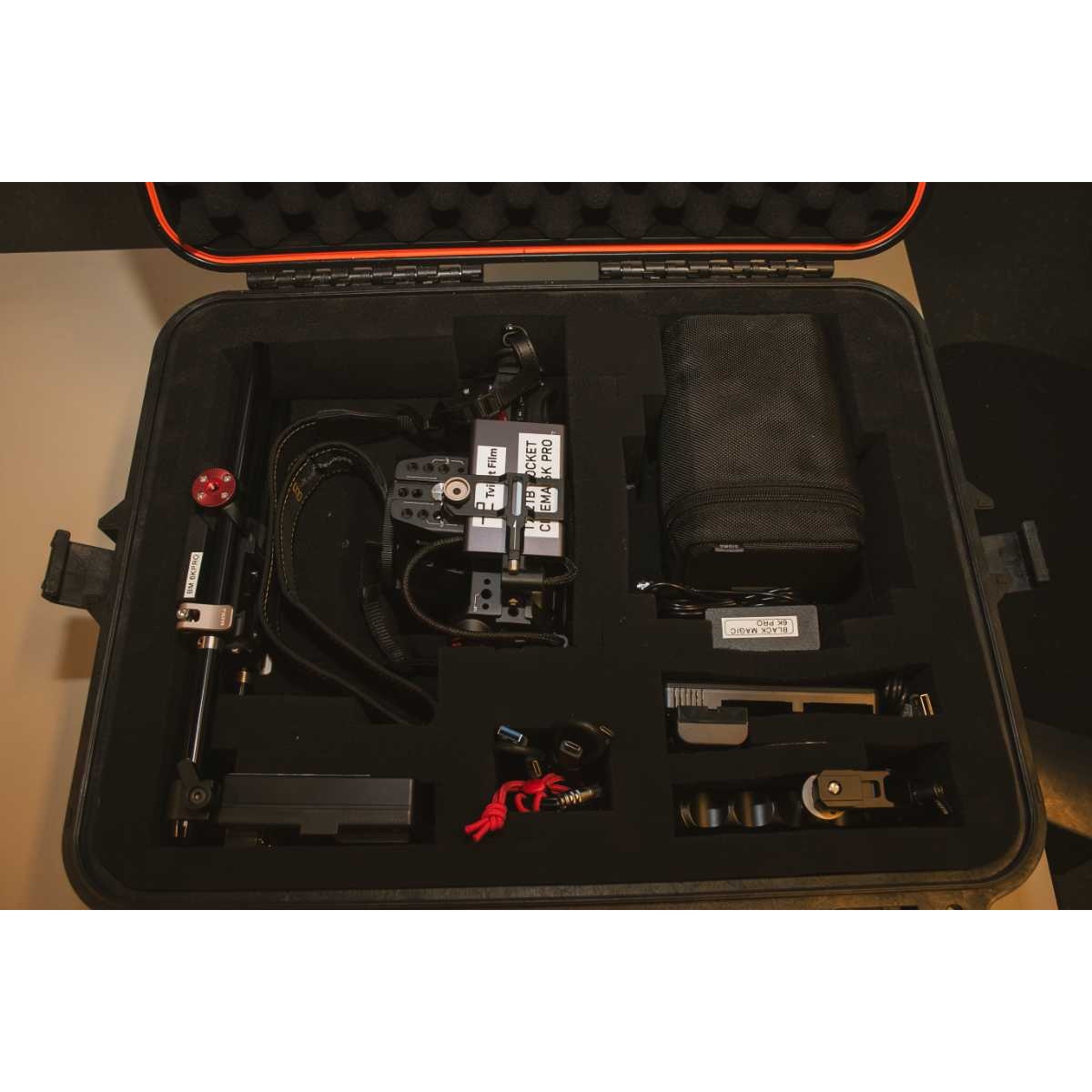 Contains: 2x Batteri Batterilader Faststrøm adapter D-TAP adapter kabel Full Cage med top handle og 15mm pipes 2TB samsung T7 SSD med cage og kabel Skulderstropp